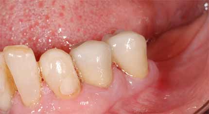 Si esegue un intervento chirurgico parodontale (allungamento di corona clinica) per adattare la gengiva alla radice recuperata.