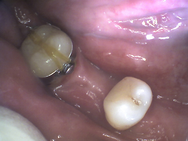 Soggetto di sesso maschile che si è rivolto al nostro studio per la risoluzione di una condizione di edentulia inferiore. Dopo un serie di estrazioni di residui radicolari è stata approntata una protesi provvisoria. Vi era però la necessità di recuperare lo spazio in zona molare 4.6 per l'inserimento di un impianto osteointegrato.