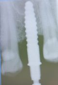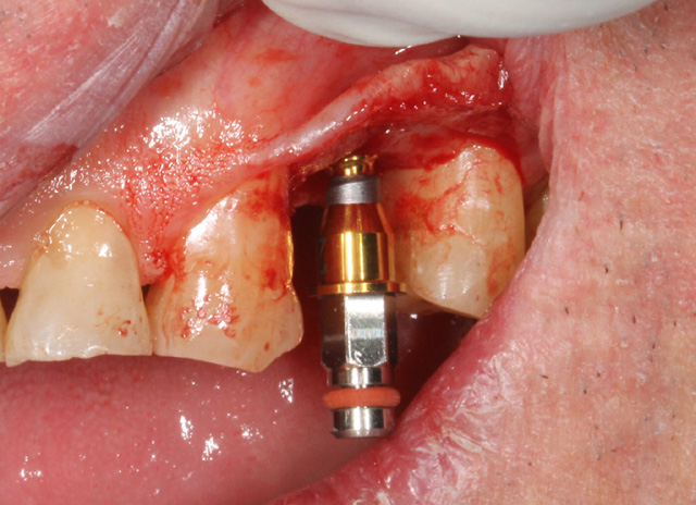 Si opta per un impianto di dimensioni 4,5 mm e 10 mm di lunghezza. Come possibile osservare dalla rx endorale erano disponibili 8 mm. Il piccolo rialzo ha permesso di recuperare 2 mm ed inserire un impianto di adeguate dimensioni e adeguata lunghezza per un elemento premolare.