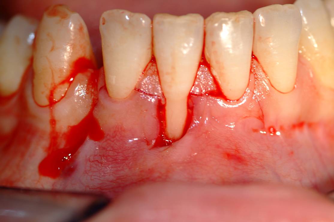 In questo caso si può notare come a fronte di una recessione gengivale sia possibile con un intervento estremamente delicato riportare la gengiva in posizione corretta.