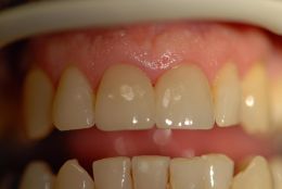 Il paziente C.S. di anni 52 mi è stato inviato per risolvergli il problema estetico dei due incisivi centrali. Il paziente, dal precedente Dentista, periodicamente si sottoponeva a ricostruzioni in materiale composito dei due incisivi dato che rifiutava assolutamente di rivestire i due denti con delle corone. Per il paziente l'idea di dovere rimpicciolire i denti e rivestirli con due corone artificiali non era bene accetta per il semplice fatto che, secondo lui, la presenza di due corone protesiche a livello degli incisivi potessero risultare altamente antiestetiche. Al paziente quindi spiego la presenza della necrosi pulpare, la ormai mancanza di forma dei due centrali deturpata dalle continue ricostruzioni in composito, la carenza comunque dell'estetica delle due corone "naturali", l'assenza ormai da anni da parte del paziente per i motivi citati del Sorriso spontaneo. La mia attenta analisi del caso ha convinto il sig. C.S. a sottoporsi alla riabilitazione definitiva dei due incisivi centrali e a ritrovare così il suo sorriso.