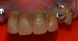 Protesi dentarie rimovibili scheletrata, con elementi in composito altamente estetici, i ganci sono stati rivestiti anche essi in composito per mascherarli