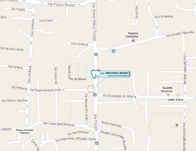 "Aut. San. n° 40/07" Lo Studio Odontoiatrico è sito in Giugliano presso il Palazzo Coppola, in pieno centro cittadino meglio conosciuto come "ex liceo scientifico". Di facile accesso sia per i residenti cittadini nonchè per i cittadini dei paesi limitrofi dalla SP circumvallazione esterna in prossimità della rotonda di Villaricca (NA) direzione Giugliano, o con mezzi pubblici Metro e bus (fermata adiacente allo studio). Si riceve per appuntamento Lunedi al Venerdì dalle 9.15 alle 12,30, e dalle 15.00 alle 19.00