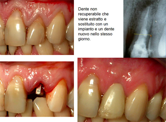 The immediate placement of dental implants in aesthetic areas is a primary challenge for modern implantology. The underlying treatment goal is to preserve the natural periodontal architecture; in recent years, concurrent goal has also been to reduce the period between implant placement in the fresh extraction socket and delivery of the definitive restoration, but adequate long-term data are still lacking on the efficacy of this technique. A 3- to 5 year retrospective analysis of 282 dental implants immediately placed into extraction sockets, and temporized with non-occluding provisional prostheses, has been undertaken. All recorded outcomes, complications and a proposed protocol for management of immediate function are discussed.