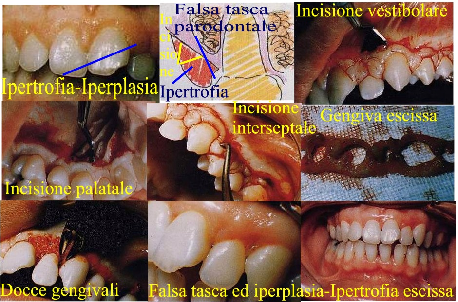 La terapia parodontale con la risoluzione di eruzione passiva (cioè i denti corti) con l'allungsmento chirurgico degli stessi, porta ad una riduzione della gengiva ed ad un sorriso più gradevole. Sono delle soluzioni molto meno traumatiche rispetto alla chirurgia ortognatica. Il risultato si può vedere prima facendo dei provvisori che simulino il risultato finale. Saluti