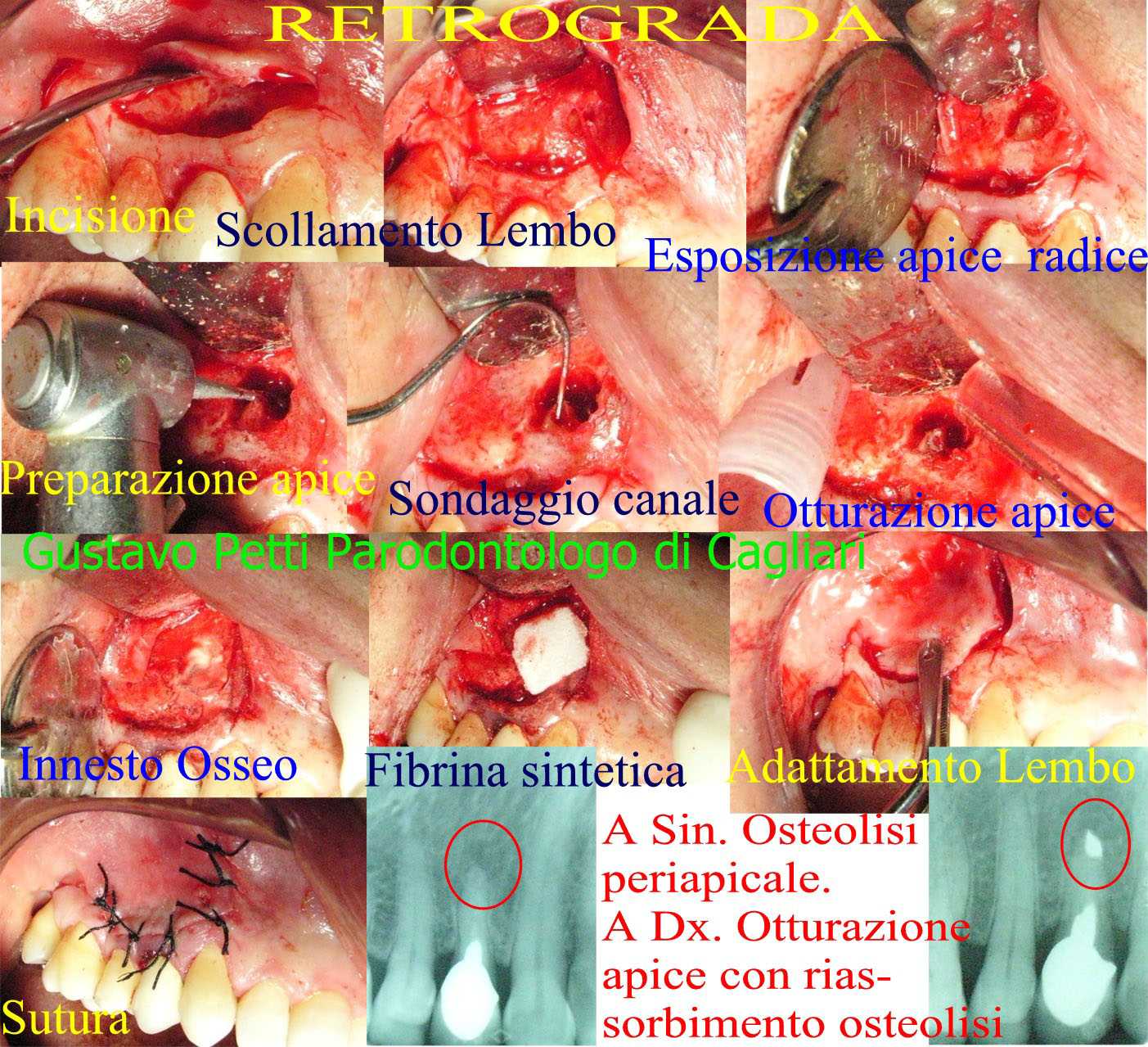 Caro signor Carmine, buongiorno, ha invertito le Rx OPT che in ogni caso non vanno bene per valutare la sua situazione clinica. Occorre una Rx endorale e soprattutto una visita clinica e semeiologica. In ogni caso da quanto vedo il dente in questione, cos' come pure il suo antagonista, ha "un embrione" di terapia endodontica, assolutamente incompleta. In questa situazione è possibilissimo che il Dente sia ancora parzialmente vivo e vitale e risponda agli stimoli termici. Ancora più verosimile è che stia andando in necrosi ed abbia una sintomatologia radicolare della polpa che deve essere attentamente valutata. Comunque, bisogna rimuovere il precedente tentativo di terapia canalare che ha dato esito solo ad un insuccesso, anche se sembrerebbe uno strumento fratturato all'imbocco del canale. Strumento che deve essere rimosso con "abilità" per evitare fratture radicolari! L'antagonista è invece sicuramente in necrosi e con una osteolisi periapicale. Anche qui deve essere rimossa la precedente terapia canalare che deve essere rifatta! Se non volesse rifare la corona protesica o perforarla occlusalmente, bisogna fare una terapia endodontica retrograda, di cui le lascio un poster dimostrativo di un mio intervento simile! Noto anche un riassorbimento non solo verticale (crateri, emisetti, circumferenziali etc) ma anche orizzontale osseo parodontale ed una alterazione della festonatura ossea, dove più dove meno! Ha bisogno di una Visita Parodontale che è costituita da due visite intervallate da una preparazione iniziale con Igiene Professionale della tasca, Curettage e Scaling e Root Planing per rimuovere il tessuto di granulazione dall'interno della tasca stessa che falsa la presa delle misurazioni della sua profondità, le Rx endorali complete, i modelli di studio e che nella seconda visita si riprendono le misure delle tasche che ora saranno quelle vere e dalla differenza tra le prime e le seconde si fa diagnosi sul tipo di Parodontite, sulla sua Aggressività, sulla sua attività e si emette una Prognosi e si pianifica una eventuale terapia! Ribadisco che la Parodontite, quale che essa fosse, se ci fosse, si può curare e si deve curare e lo ribadisco perché sento troppo spesso Colleghi che dicono che non è curabile, ma scherziamo veramente? No! E' "profonda e Reale ed inammissibile Ignoranza, di regola di chi riduce l'Odontoiatria intera, ormai,ad una serie di Avulsioni Dentarie (estrazioni) e sostituzione con impianti!(Non mi capisca male, io stesso faccio implantologia ma solo se Necessaria e solo come "Ultima spiaggia". Un accuratissimo e Colto Studio di Charles J. Goodacre e W. Patrick Naylor della Loma Linda University, in California ha concluso che, e riporto dall'articolo del Dr.Adelmo Calatroni, si hanno maggiori certezze nel promuovere, quando possibile, la conservazione del dente attraverso la terapia endo-parodontale: in questo caso il rapporto costo-efficacia è risultato cinque volte migliore rispetto all'estrazione seguita dal posizionamento di un impianto.Bibliografia: Goodacre CJ, Naylor WP. Single implant and crown versus fixed partial denture: A cost-benefit, patient-centred analysis. Eur J Oral Implantol. 2016;9(2):59-68. Ripeto si faccia visitare da un Bravo parodontologo. lo dico da Parodontologo :)! Cari Saluti