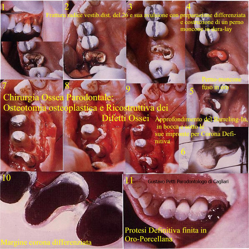 Cara Signora Isabella, buongiorno. Le Rx sono illeggibili e di pessima qualità, in particolare quella riferentesi al molare in questione in cui non si vedono neanche gli apici, soprattutto della radice palatale. Le terapie endodontiche sembrerebbero oltre apice e questo, per esempio, può essere causa di dolore per qualche tempo. Inoltre c'è un aumento dello spazio parodontale con alterazione della corticale ossea che indica sofferenza parodontale, confermata anche soprattutto da una decapitazione delle piramidi ossee interprossimali in corrispondenza soprattutto del sottosquadro enorme ed irrazionale della otturazione del molare. Quindi bisogna fare una diagnosi differenziale tra patologie ( anche iatrogene) parodontali ed endodontiche ( canali sovrannumerari, canalicoli laterali ben rappresentati che è difficile evidenziare anche con una Cone Beam 3D, più che altro, anche, perché bisogna saperla "leggere"! Lei ha bisogno due visite intervallate da una preparazione iniziale con curettage e scaling e root planing e serie completa di Rx endorali, modelli di studio e tanto altro. Visite con sondaggio parodontale in sei punti di ogni dente di tutti i denti e tanto altro e seconda visita di rivalutazione con risondaggio delle tasche che ora indicheranno la reale profondità delle stesse perché è stato escisso il tessuto di granulazione presente che ne falsava la misura in prima seduta! Si completerebbe la visita con valutazioni Gnatologiche, disgnatiche. Una serie completa di Rx endorali e non una OPT che non serve assolutamente a niente per evidenziare i difetti ossei. Solo così si arriva ad una Diagnosi e ad una pianificazione terapeutica. Bisogna correggere la forma della otturazione descritta eliminando il sottosquadro e controllare bene i precontatti gnatologici in lateralità canina e protrusiva incisiva e relazione centrica. Non faccia estrarre il dente, anche se ci fosse una frattura basterebbe estrarre la radice interessata conservando le altre due con una ricostruzione con perno moncone ed una preparazione protesica differenziata ed approfondendo il Barrelling-in, cosa che pochi protesisti sanno fare, purtroppo :). Tutto qui, è normalissima Routine Odonto-Parodontale-Protesica-Riabilitativa che qualsiasi Dentista che si dedichi ad una Odontoiatria con un minimo di qualità sa fare! Le lascio un Poster di foto proprio di un caso simile al suo con in più una parodontite e chirurgia ossea ricostruttiva, della mia casistica personale, affinché comprenda meglio. Non faccia estrarre il dente perchè si vuole andare a "parare" proprio con l'impianto. Un accuratissimo e Colto Studio di Charles J. Goodacre e W. Patrick Naylor della Loma Linda University, in California ha concluso che si hanno maggiori certezze nel promuovere, quando possibile, la conservazione del dente attraverso la terapia endo-parodontale: in questo caso il rapporto costo-efficacia è risultato cinque volte migliore rispetto all'estrazione.Bibliografia: Goodacre CJ, Naylor WP. Single implant and crown versus fixed partial denture: A cost-benefit, patient-centred analysis. Eur J Oral Implantol. 2016;9(2):59-68. Cari saluti