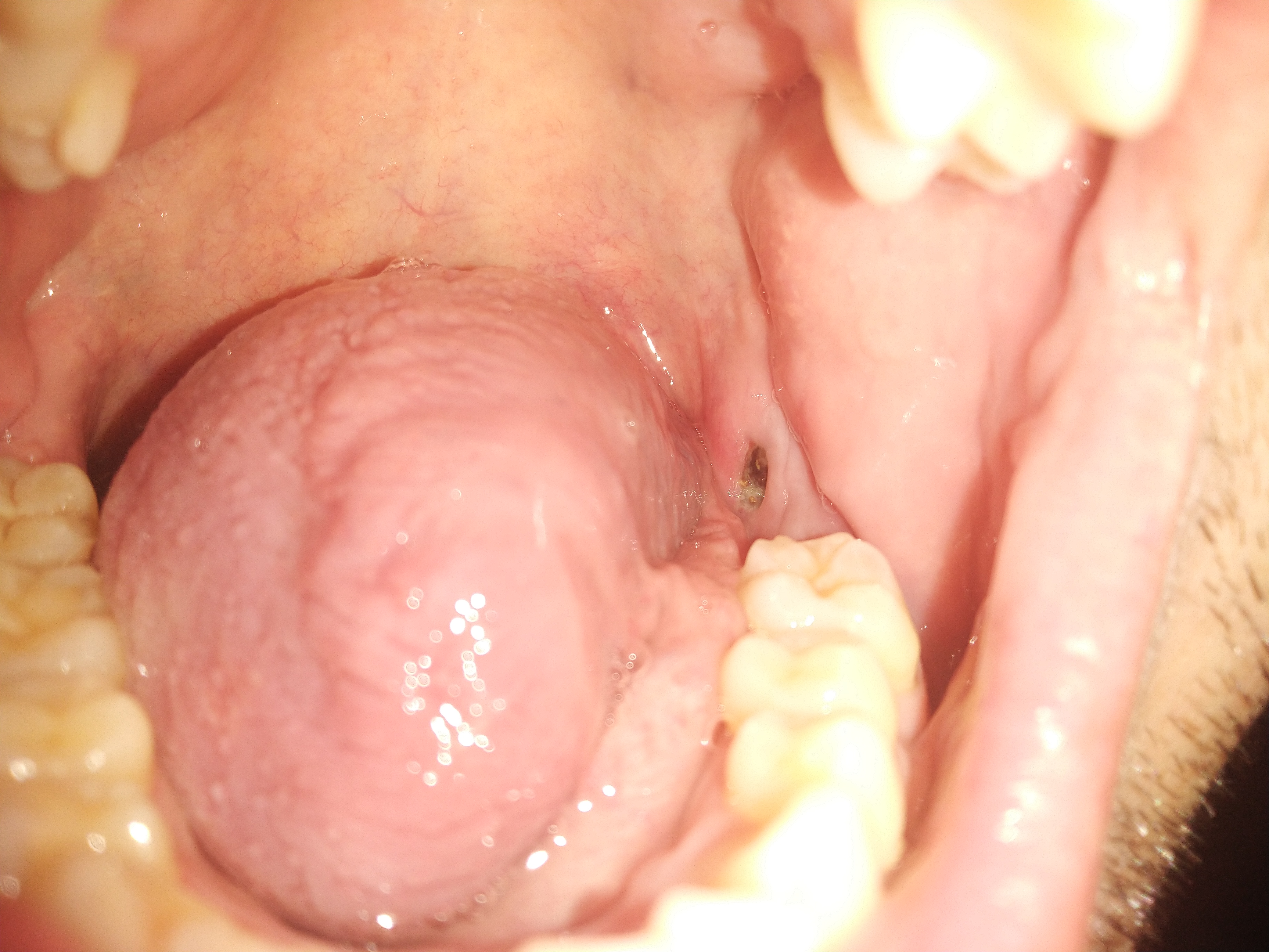 Buongiorno oggi mi sono accorto di questa lesione del tutto asintomatica nella parte posteriore inferiore sx. Non riesco a capire di cosa si tratti. Circa 2 anni fa ho tolto un ottavo incluso sempre nello stesso lato. Grazie anticipatamente