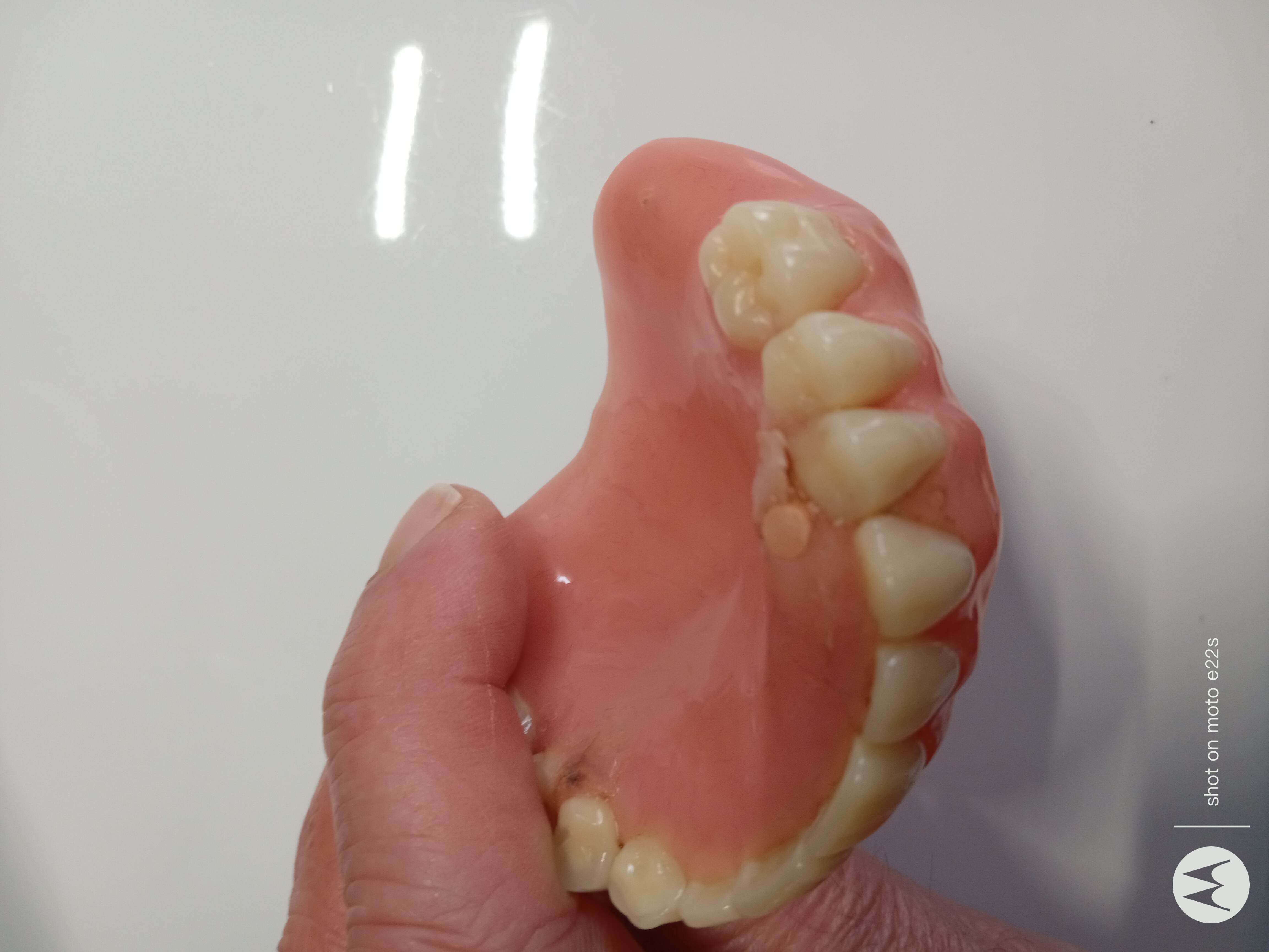 Buongiorno, un anno e mezzo fa ho eseguito protesi completa con bottoni, per la superiore hanno usato due mie radici cementandomi due cappe che si vanno ad accoppiare con i ring di ritenzione. Da quando mi hanno finito il lavoro si è già rotta tre volte in prossimità degli agganci. Una settimana fa mangiando è venuto via un grosso pezzo dove c'era il ring lasciando un vuoto. Il dentista dice che dopo questo tempo è normale che si rompa e andrebbe riparata (ancora !?!?!) e il costo sarebbe a mio carico. Non mi sembra molto corretto. Allego foto della protesi.
